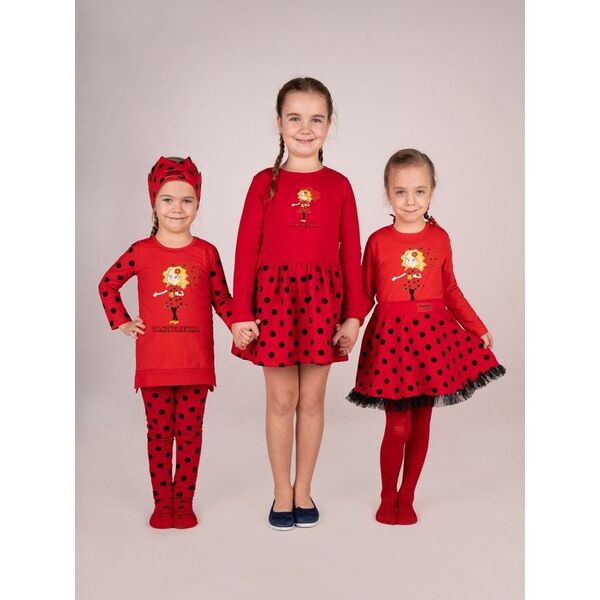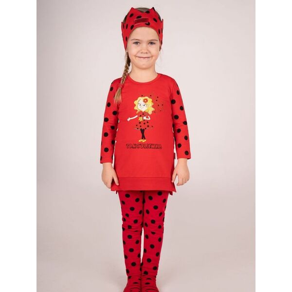 Dievčenské bodkované legíny Krásne hravé a pohodlné dievčenské legíny. Červené legíny na čierne bodky, viete kto je takto oblečený? No predsa Tanculienka. Doprajte svojim dievčatám legíny, aby sa mohli zahrať na Tanculienku. Príjemný materiál, zadné vrecká a neprehliadnuteľný vzor. Môžete doplniť o dievčenské tričko s Tanculienkou.