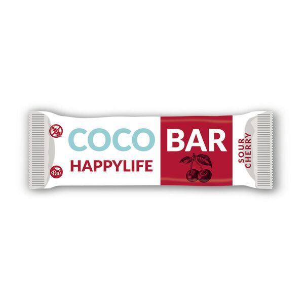 Zloženie: kokos* 50%, ryžový sirup*, višne* 7%, *=bio.