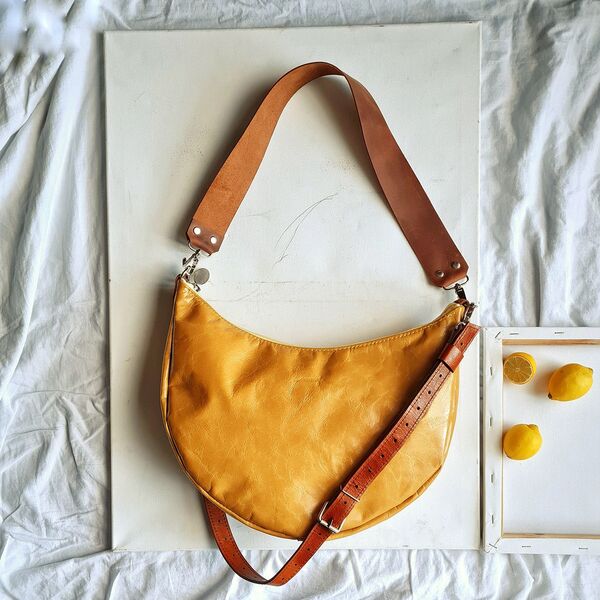 Luna kabelková maxi ľadvinka, ktorá s vami splynie Je kombináciou kabelky a ľadvinky. Vďaka svojmu tvaru a materiálu sa kabelka prispôsobí vašim krivkám a veľmi dobre sa nosí.Kabelky Luna sú ušité z kvalitnej čalúnickej tkaniny, ktorá je veľmi pevná, dotykom podobná zamatu, či jelenici.Zdobí ich široký kožený popruh, ktorý je možné nosiť na ramene, alebo ako ľadvinku cross-body.Zatvára sa na zips. Sú podšité kvalitnou bavlnenou látkou s vnútorným vreckom na zips. Ku kabelke je možné dokúpiť aj dlhý cross-body popruh (viď posledné ilustračné foto) ROZMERY Výška: 24 cm (v strede kabelky)Šírka: 37 cm (najširší bod)Hĺbka: 7,5cm (najširší bod) Široký popruh: 72 cm (s karabínami) - výška modelky 163cm