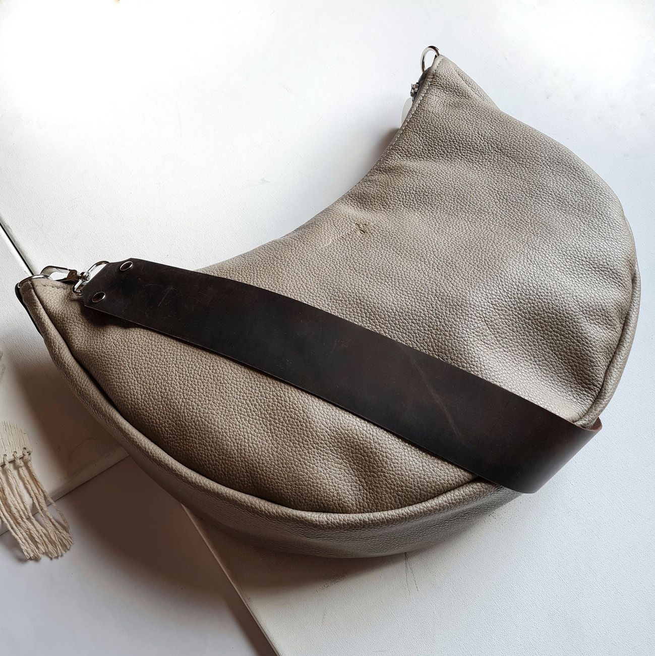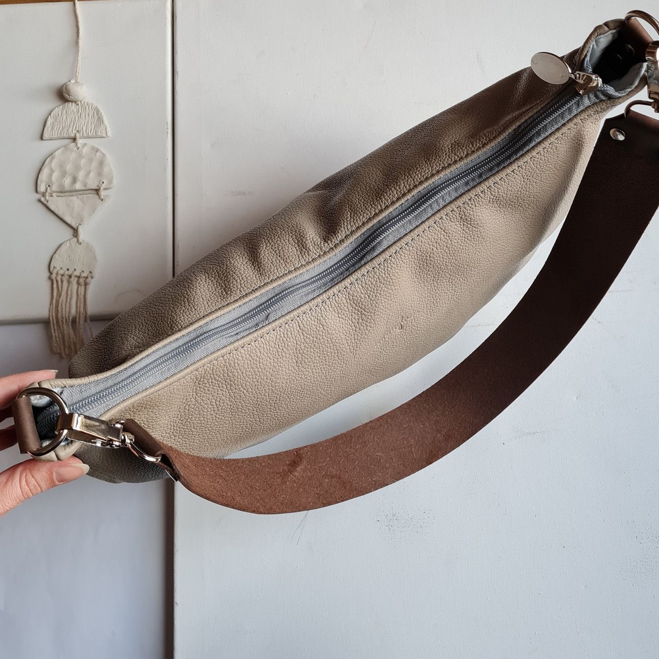 Luna kabelková maxi ľadvinka, ktorá s vami splynie Je kombináciou kabelky a ľadvinky. Vďaka svojmu tvaru a materiálu sa kabelka prispôsobí vašim krivkám a veľmi dobre sa nosí.Kabelky Luna sú ušité z mäkkých talianských koží rôznych farieb a typov.Zdobí ich široký kožený popruh, ktorý je možné nosiť na ramene, alebo ako ľadvinku cross-body.Zatvára sa na zips. Sú podšité kvalitnou bavlnenou látkou s vnútorným vreckom na zips. Ku kabelke je možné dokúpiť aj dlhý cross-body popruh. ROZMERY Výška: 24 cm (v strede kabelky)Šírka: 37 cm (najširší bod)Hĺbka: 7,5cm (najširší bod) Široký popruh: 72 cm (s karabínami) - výška modelky 163cm