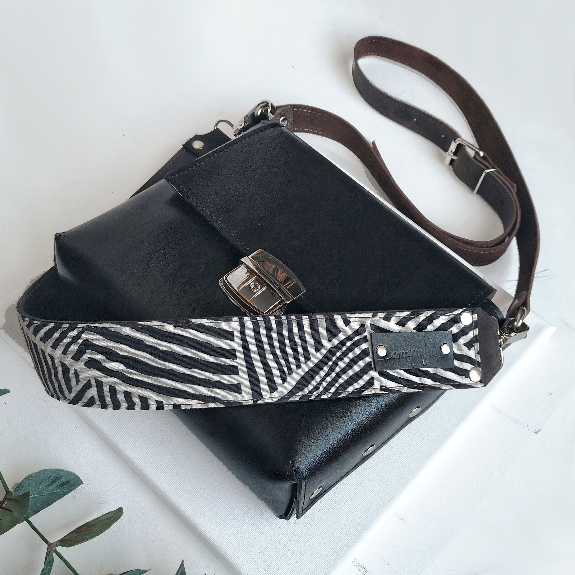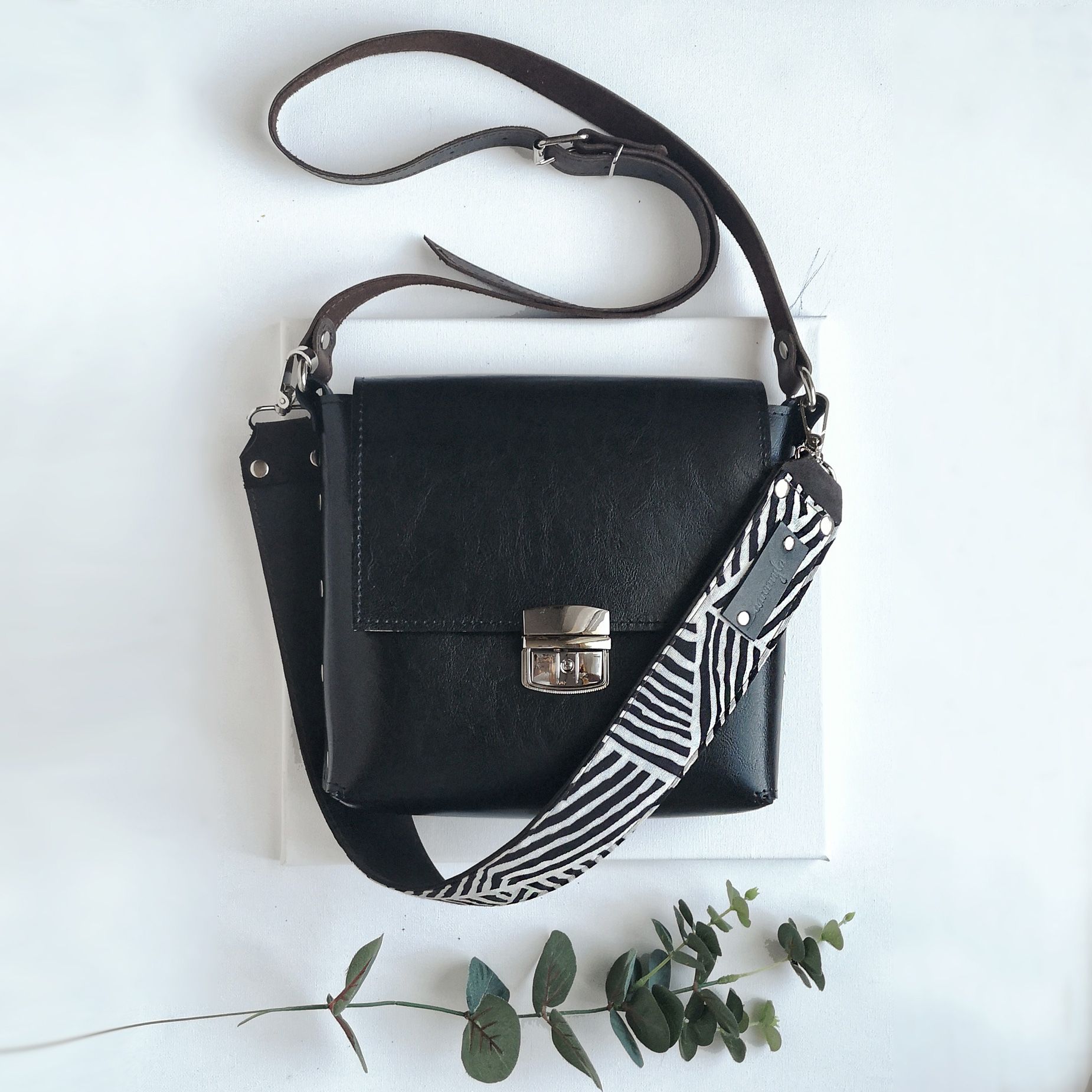 Kabelka Nia zaujme každé zvedavé oko už na prvý pohľad Je vyrobená z talianskej hovädzej kože, ktorá je na povrchu hladká a lesklá. Je podlepená jemnou tenkou kožou, ktorá jej dodáva luxusnejší vzhľad. Na rozdiel od ostatných kabeliek strednej veľkosti, je Nia viditeľne širšia a tým pádom aj priestrannejšia. Hrany kabelky ako aj remeňov sú ošetrené farbou a voskom. Kabelku výrazne spestruje jej široký, odnímateľný kožený remeň, ktorý je z rubovej strany zdobený vzorovanou bavlnenou látkou. Obidva remene sú vyrobené z hrubšej hovädzej kože crazy-horse. Podobne ako kabelky MiniMe, MidiMe a MaxiMe je aj Nia dostupná v rôznych farbách a druhoch kože. Ak máte záujem o inú kožu, alebo farbu, neváhajte nás kontaktovať. Ak máte záujem o iný motív látky na bavlne širokého popruhu, napíšte to do poznámky k objednávke. O dostupnosti daného motívu vás budeme informovať, prípadne nás kontaktujte vopred. V prípade, že máte záujem o iné farebné prevedenie, kontaktujte nás. Rozmery: Výška: 20cm Šírka: 21 cm Hĺbka: 7 cm Dĺžka cross-body remeňa: max. 130cm Dĺžka širšieho remeňa: cca 60cm Bycast - pravá koža s povrchovou úpravou
