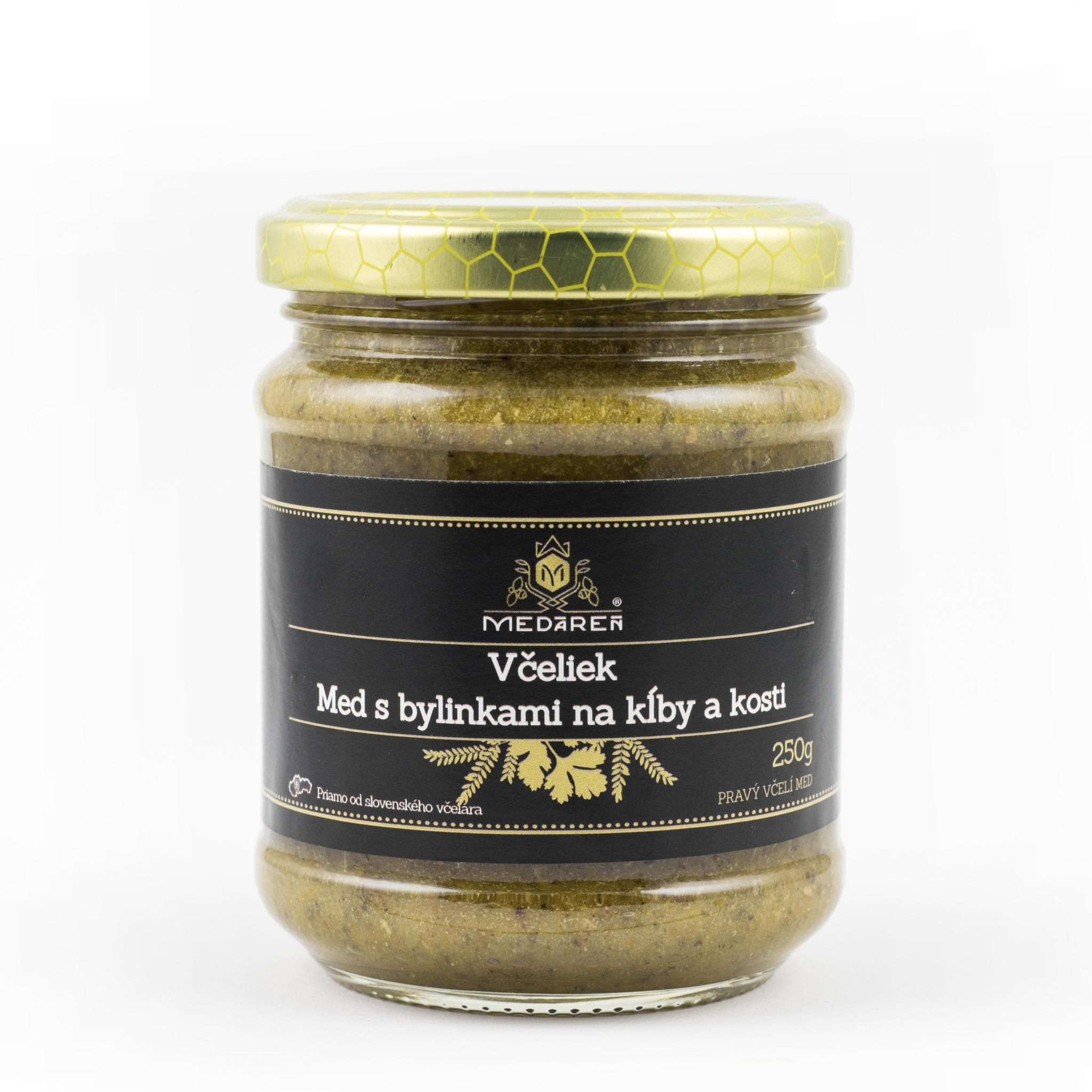 Med s bylinkami na kĺby a kosti obsahuje to najcennejšie z prírody: kvetový med, peľ, praslička, ránhoj, čiernohlávok, breza, ríbezľa, vres, čertov dráp, rozmarín.