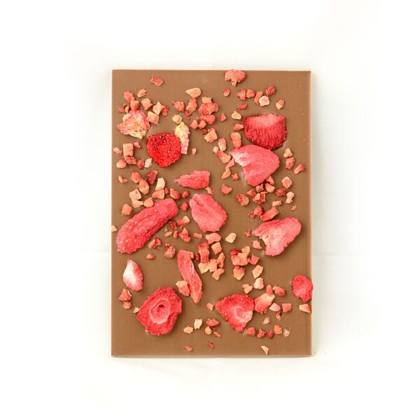 Mliečna čokoládová tabuľka s posypom lyofilizovaných jahôd