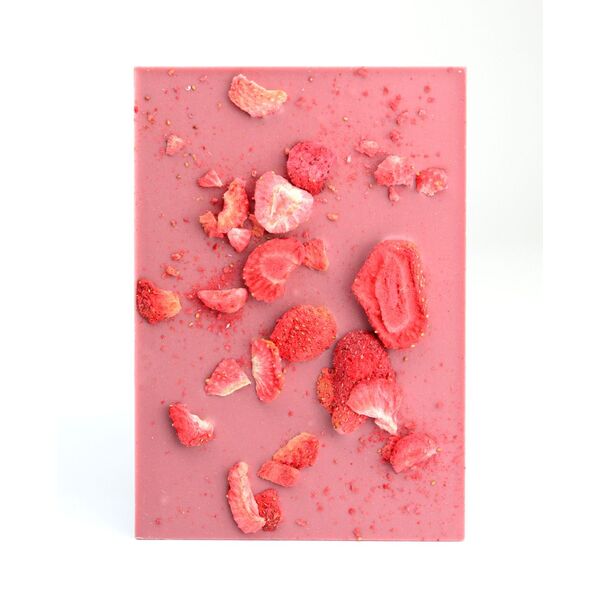 Ružová / RUBY čokoládová tabuľka s posypom lyofilizovaných jahôd