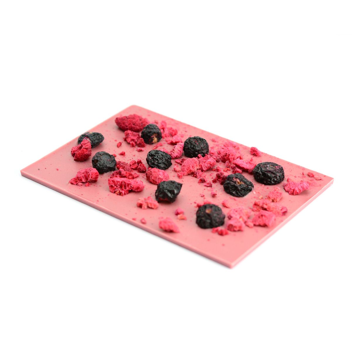 Ružová / RUBY čokoládová tabuľka s posypom lyofilizovaných jahôd a čučoriedok