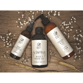 Dôkladný výber ekologických plodín, robí z nášho šampónu vynikajúceho pomocníka v boji proti vypadávaniu vlasov. Postará sa o nadmerné vylučovanie mazu, odstraňuje lupiny z pokožky hlavy a tvoje vlasy ostanú svieže, pružné a prirodzene lesklé.