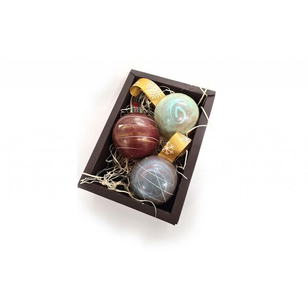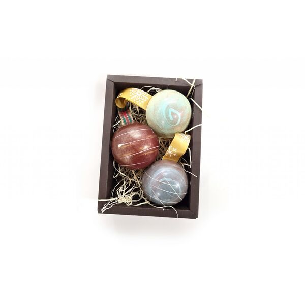 Set 3ks vianočných maľovaných čokoládových gúľ so stuhou zabalené v darčekovej škatuľke