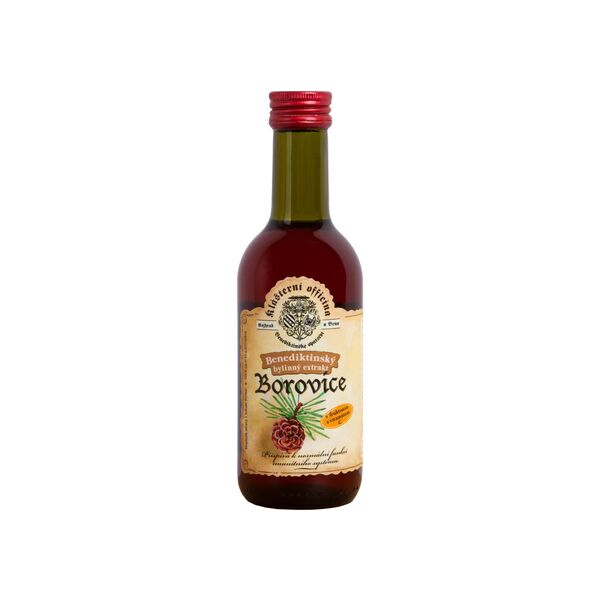 Zloženie: fruktóza, voda, výťažok z pupeňov borovice lesnej 1,92%, výťažok z ibišteka sudánskeho, kyselina L-askorbová (vitamín C) 0,09%, regulátor kyslosti: kyselina citrónová a kyselina jablčná. Pasterizovaný výrobok. Dávkovanie: deti od 3 rokov 2x denne 1 lyžičku (5ml), dospelí 3x denne 3 lyžičky (15ml). Ustanovená denná dávka sa nesmie presiahnuť. Výrobok nie je vhodný pre deti do 3 rokov, nie je určený na dlhodobé užívanie a nie je náhradou stravy.
