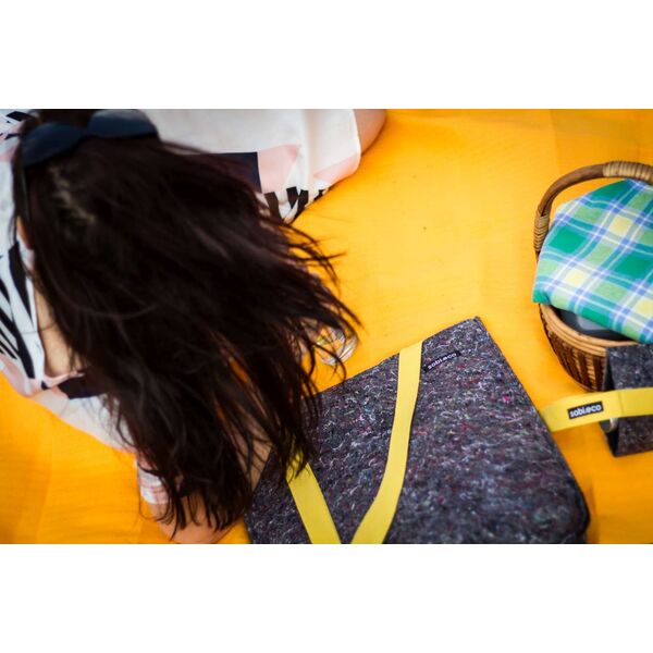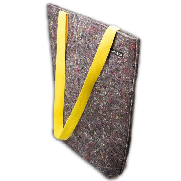 Ručne vyrobená v chránenej dielni na Slovensku. 100% recyklovaný materiál je kombinovaný so 100% bavlneným popruhom. Zakúpením tohto produktu podporujete prácu znevýhodnených ľudí a vzdelávanie na školách v oblasti eko životného štýlu.