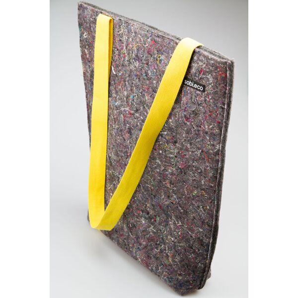 Ručne vyrobená v chránenej dielni na Slovensku. 100% recyklovaný materiál je kombinovaný so 100% bavlneným popruhom. Zakúpením tohto produktu podporujete prácu znevýhodnených ľudí a vzdelávanie na školách v oblasti eko životného štýlu.